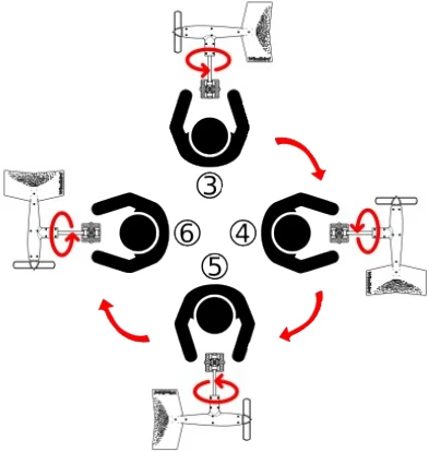 - Tournez votre corps à 90° sur votre droite. Faites pivoter le WindBird.